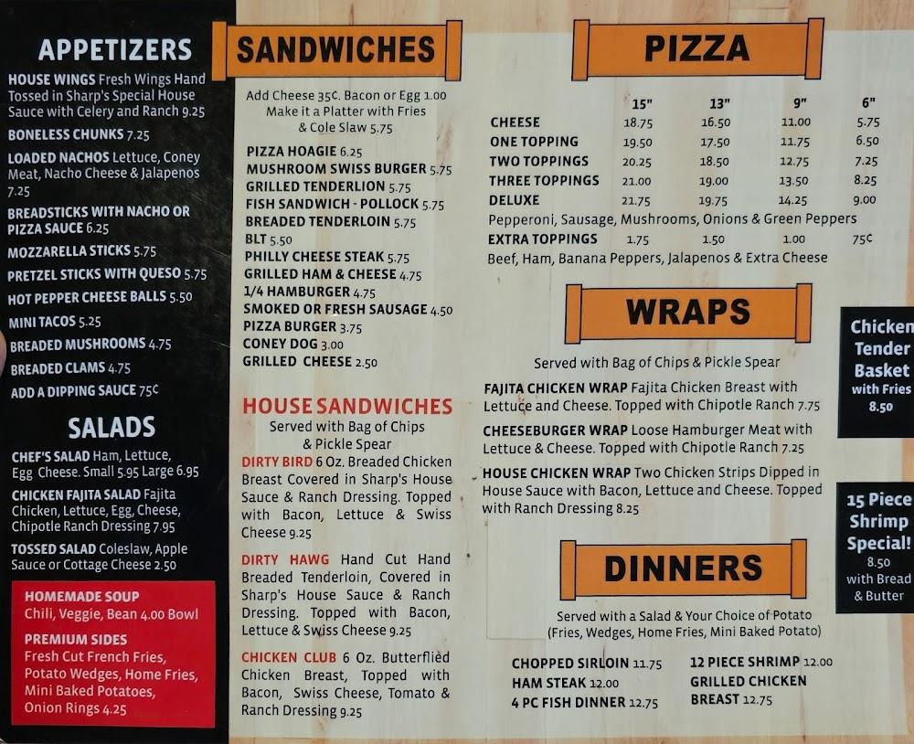 Sharp's Tavern features a diverse menu that caters to all tastes. Pizza reigns supreme with a variety of styles, including cheese and deluxe options loaded with fresh toppings. Diners can also explore a selection of sandwiches and wraps, offering both classic and innovative flavors. Appetizers like house wings and cheese sticks provide a great start to meals.